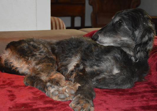 Sie erholte sich von ihrem anstrengenden Leben so gut, dass sie in kürzester Zeit als fast ältestes Afghanen-Mädchen die Führung des Rudels übernahm. Sie konnte jedem sehr deutlich sagen, was er zu lassen oder zu tun hatte, ohne dabei übergriffig zu werden. Sie liebte das gemütliche Sofa und nur Auserwählte durften sich zu ihr legen. Draußen lief sie immer frei, sie hatte nach wenigen Wochen beschlossen, sie würde ihrem Frauchen überall hin folgen. Wo auch immer ich saß, Dorothy lag neben mir – mein grauer Schatten. Sie durfte ihre letzte Lebenswoche in der Normandie verbringen und sie freute sich jeden Tag wie eine Junge auf den Spaziergang.