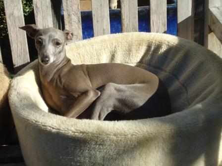 Diva lebt nun mit zwei netten Windspielbuben, die der kleinen Lady sofort Platz auf ihrem geliebten Küchensofa gemacht haben;-)
