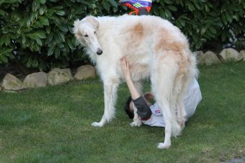 Umso mehr freuen wir uns für den Buben, daß er diese Chance bekommt bei zwei solch großen Barsoi-Liebhabern leben zu dürfen.