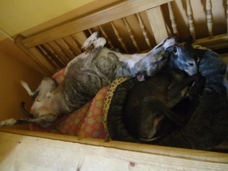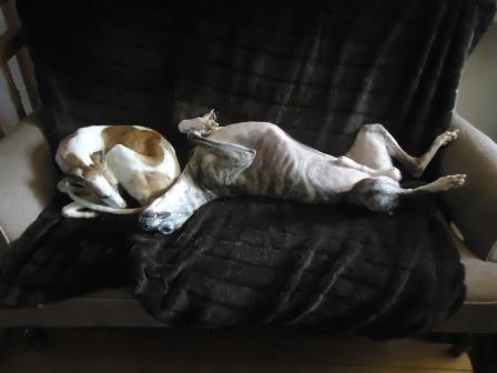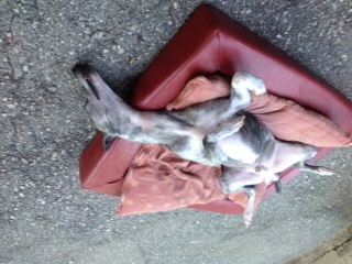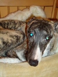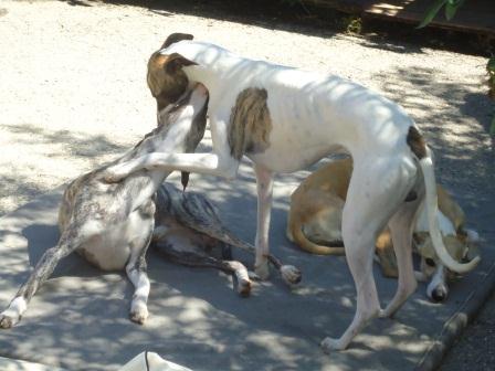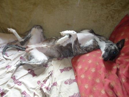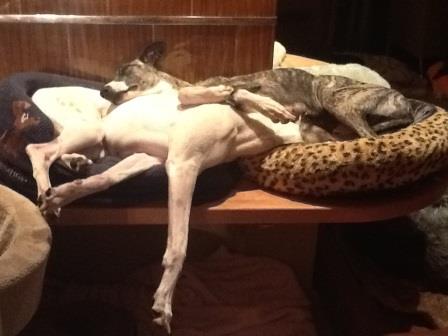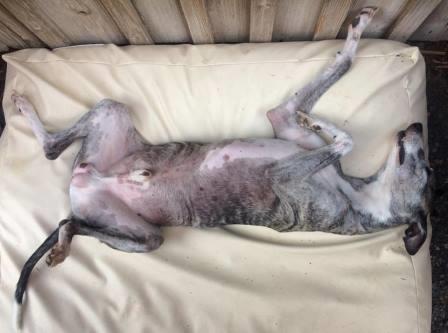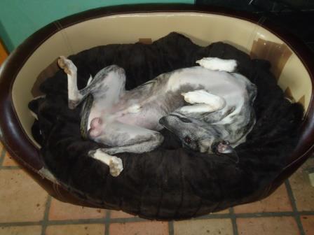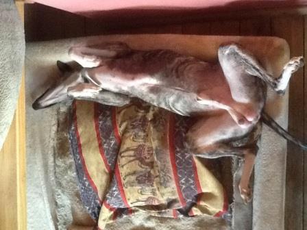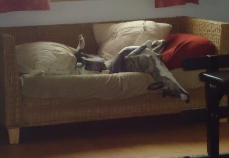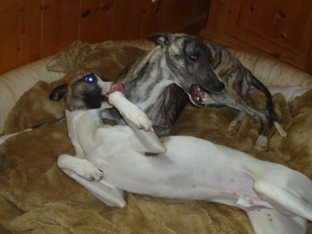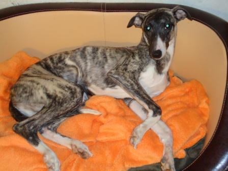 Bobby hatte sich einst das Vorderbein gebrochen, was gerichtet wurde, letztendlich landete er irgendwo in einer Scheune. Dort kaufte ihn eine Whippetliebhaberin frei und übergab Bobby an uns.