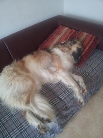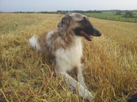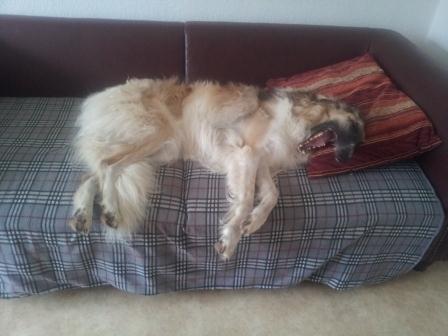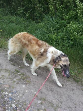 Manfred ist seit Sonntagabend bei uns auf einer Pflegestelle. Das ist ein absolut lieber, harmloser Kerl, der sich auch für einen Barsoi-Anfänger eignet. Er kommt mit allen Hunden gut aus und bewegt sich im Rudel bereits total entspannt. Wenns irgendwo knistert, steht er sofort bei Fuß: Essen tut er für sein Leben gern;-)