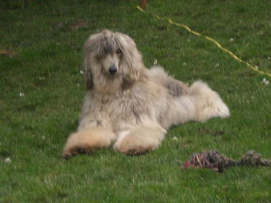 2007 entdeckten wir auf der Internetseite der IWI einen wunderschönen blau-brindle-domino Afghanen