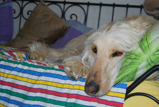 Unser Afghane Tom war im August 2012 zu einigen anderen (Wind)-Hunden platziert worden. Im Laufe der Zeit stellte sich heraus, daß die anderen Hunde ein Überforderungsmoment für ihn darstellten.