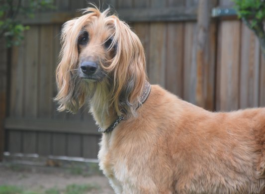 Unsere Fati hat es dort wunderschön: herrlicher Garten, tolles Haus und v.a. zwei so richtige Afghanen-Liebhaber!