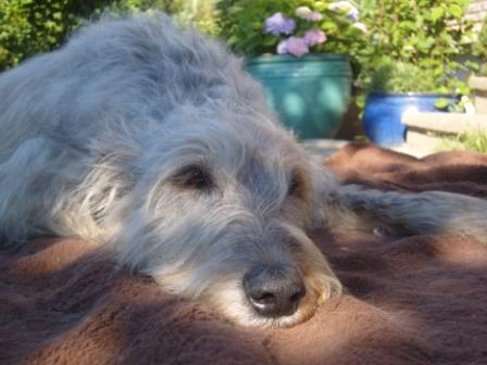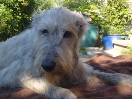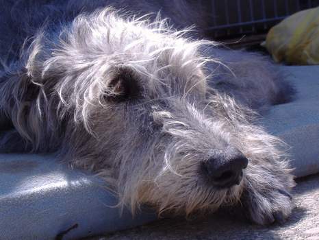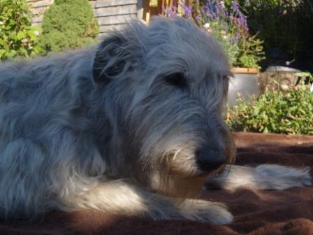 Oft haben wir auch Besuch, der sich nur für einen Irish-Wolfhound interessiert, ausschließlich diese Rasse muß es sein - wenn wir dann berichten, dass bei den IW´s das Durchschnittsalter bei 5,5 Jahren (oder mittlerweile gar darunter) liegt, blickt man in ungläubige Gesichter. Und natürlich kommt dann die Frage:" Wie alt ist denn der?" Und die Leute zeigen auf einen IW aus unserer Meute.