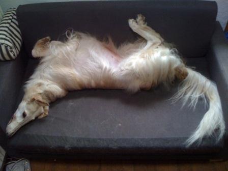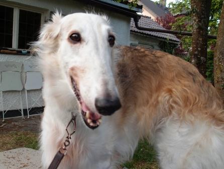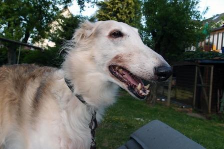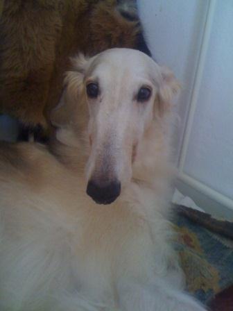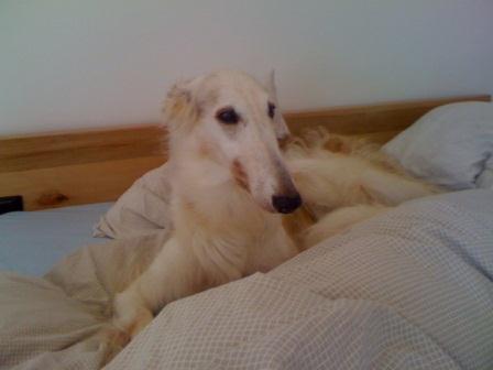 Weil Olga damals am selben Tag ihrer Ankunft in ihr Zuhause zog, hatte sie kein altes Pflegeplätzchen. Also wer von uns möchte eine alte Barsoihündin aufnehmen, die unter Umständen für immer bleibt?