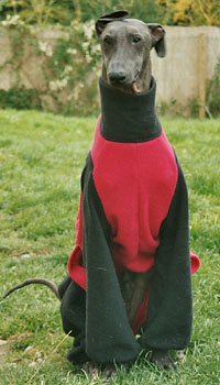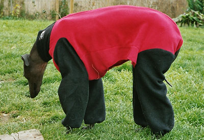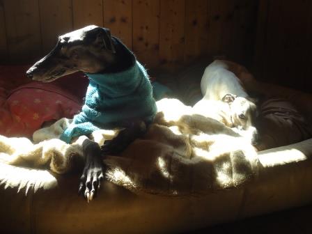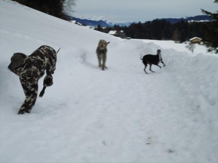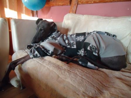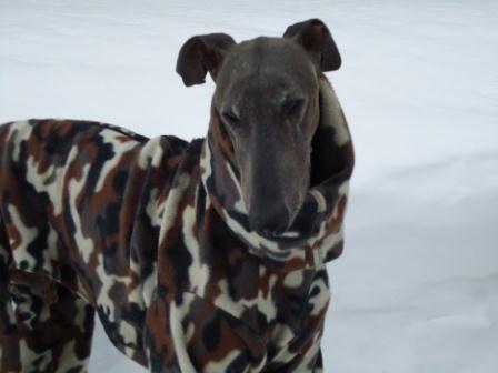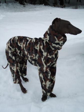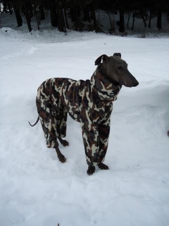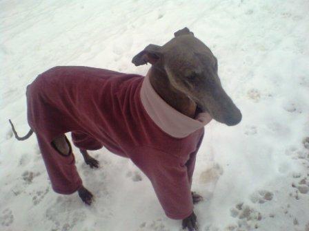 Und hier ein Gruß von unserem Paten-Deerhound Leo, der letzte Woche "eiskalt" vom Winter überrascht wurde. Zum Glück hat unser Nackedei eine gute Auswahl warmer Klamotten;-)