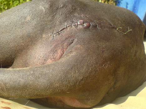 Leo geht es den Umständen entsprechend gut, er wird wieder auf die Beine kommen. Unser Tierarzt sagt, dass in 90 Prozent die OPs gut anschlagen und sowas nicht wieder vorkommt. Leos Hintern werden nun zwei große Narben zieren. Armer Kerl, jetzt hat er nicht nur keine Haare, sondern auch keine Hoden mehr - aber wenn wir schon davon reden, was er nicht hat - er braucht so dringend noch ein paar Paten, die ihn finanziell unterstützen möchten.