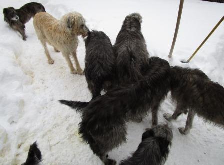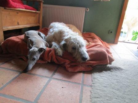 Seine zehn Meter lange Pieselspur im Hof wird fehlen, auch sein Anlehnungsbedürfnis. Immer, wenn man irgendwo stand, lehnte er sich an, so dass er fast umfiel, wenn man wegging. Er war der sanfteste, gutmütigste Irische Wolf, den wir je hatten. Gandi war unser Riesenbaby. Er fehlt.
