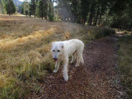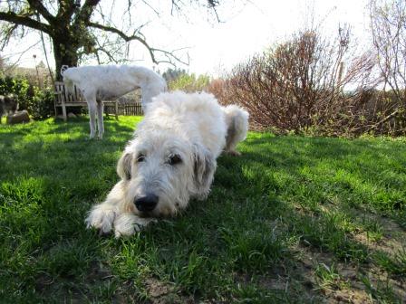 Neu aufgenommen in unser Patenprogramm haben wir den sechs Jahre alten Irish-Wolfhound-Rüden Gandi. Er lebte in einem Gartenhäuschen, wurde mit Teletakt spazieren geführt und in Narkose abgeschoren. Dementsprechend kompliziert ist es, ihn angeleint auszuführen oder ihn zu trimmen. Kürzlich überstand er eine Magendrehung mit gleichzeitiger Milzdrehung! Er will leben, sein Leben geniessen und sein neues Glück voll auskosten und das soll er auch noch einige Jahre können. Hoffen wir das Beste.