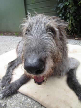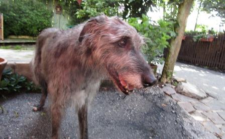 Schon als wir Caoimhe (ausgesprochen: Kiwa) bekamen, haben wir geahnt, dass sie schwer krank ist. Wir schoben das aufs Herz. Das war gar nicht so schlimm, wie wir dachten, es war der faustgroße Lungentumor, den unser Doc dann entdeckte. Krebs frißt Muskelmasse... Caoimhe hatte auf dem Kopf nur noch Haut und Knochen, kein Fett mehr hinter den Augen, auch sonst überall ziemlich knochig.