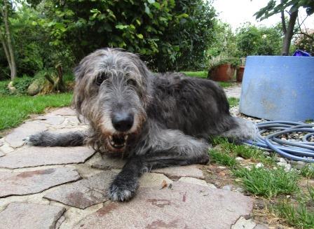 Caoimhe, neuneinhalb und schwer herzkrank, wurde deswegen noch nicht in die Paten verschoben, weil wir anfangs dachten... naja, es lohnt sich nicht mehr... denn Caoimhe war ganz, ganz schlecht beieinander. Wir bangten die ersten Tage gewaltig, ob sie es schafft oder nicht. Aufstehen konnte sie nicht alleine, sie hechelte sich halb tot. Das ist kein Leben.