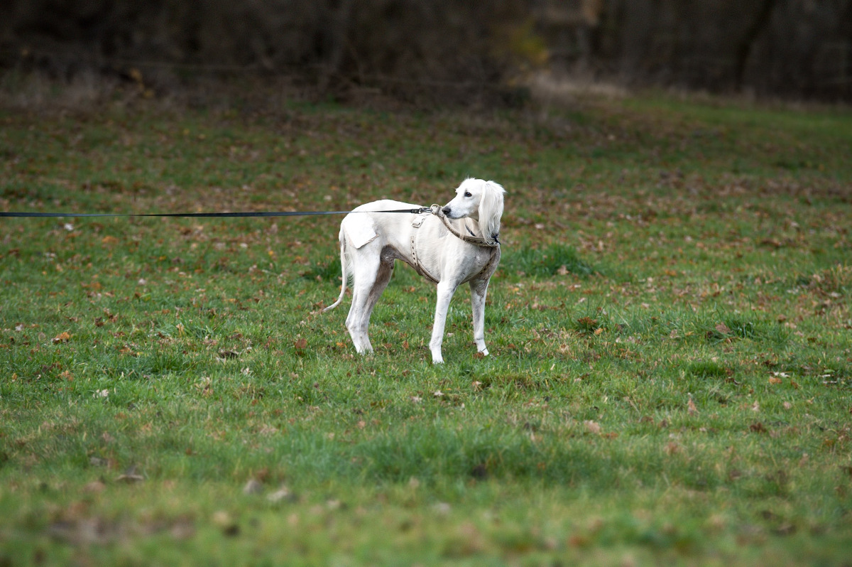 Leider haben sich aber in der letzten Zeit doch gesundheitliche Probleme zusätzlich eingestellt. Er bekommt so langsam eben all die Probleme die das Alter und viele Jahre Diabetes so mit sich bringen. Er mag nur noch im Hellen raus, weil er nachtblind wird, er baut Muskelmasse ab, die Hinterhand wird schwächer und er wird zunehmend ruhiger. Im Februar wird er 13. Eigentlich kein Alter für einen Saluki. Aber mit seiner Vorgeschichte, den immer wieder entstehenden Tumoren und seinem seit über 2 Jahren ständig Achterbahn fahrenden Zuckerspiegel altert er verständlicher Weise doch etwas schneller, die Niere der alte Auspuff klappert.... Sorgen macht er uns vor allem, wenn er mal nicht wie ein Vorwerk-Staubsauger sein Futter verschwinden lässt, sondern eher zügig ohne Hast rumknispelt, und auch schon mal stehen lässt.