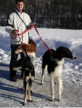 Barsoi Tiak (dunkel), Barsoi Heinrich (rot) und Saluki Niko leben bei der Familie Prinz in Bayern und haben ein tolles leben dort. Alle drei sind von der IWI und fühlen sich "prinzenwohl".