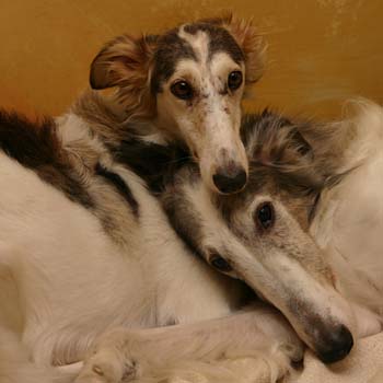 Grüße von Wolja. Sie war die erste unserer 16 + 6 Barsois, die ein Zuhause fand. Und wie man sieht, hat sie sich wunderbar mit ihrem Barsoi Nummer 2 zusammengetan.