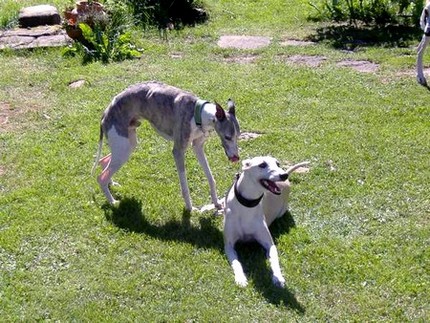 Potentielle iWi-Neu-Kunden sind auch in Sicht, Veras Wölfle sind lange verstorben und sie möchte wieder mit einem zusammenleben. George hat in Whippet Sam einen Spiel- und Hüpf-Kumpel gefunden, aber wie so oft müßte erst noch der Mann überzeugt werden, Frau hätte unseren George am Liebsten gleich eingepackt.