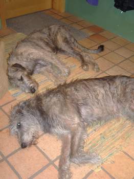 Es gab sehr, sehr viele Interessenten für unser junges Wölfle, das Telefon war ständig besetzt, bzw. unser Anrufbeantworter war ziemlich beschäftigt. Nun ist alles klar, wenn unsere Vorkontrolle positiv ausfällt, wird Stevie dieses Wochenende Richtung Mannheim ziehen. Die Familie hatte schon einige Irish Wolfhounds, der letzte starb jetzt mit erst zwei Jahren an Leukämie.