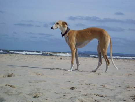 kastrierte Galga Español-Hündin, mit weißen Beinen, weißer Brust und