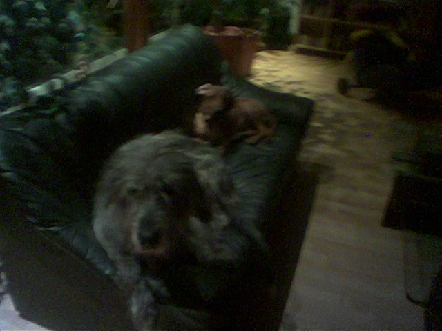 Das ist Karlchen, noch in jungen Jahren, mit seinem Erzieher Rico (Mix aus Bobtail und IW) beim verwüsten von unserem Rasen..