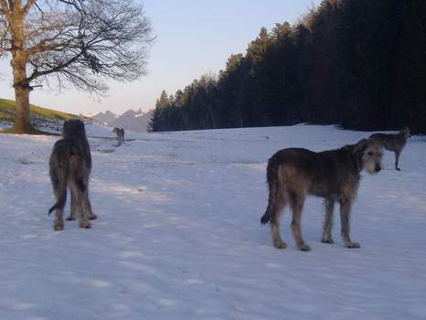 von links: Leila von hinten, Omi im Hintergrund lauernd, rechts eigener IW und Deer.