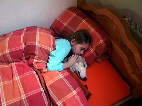 Das ist Chica mit ihrer kleinen Freundin - soviel zur Kinderfreundlichkeit von Windhunden;-)