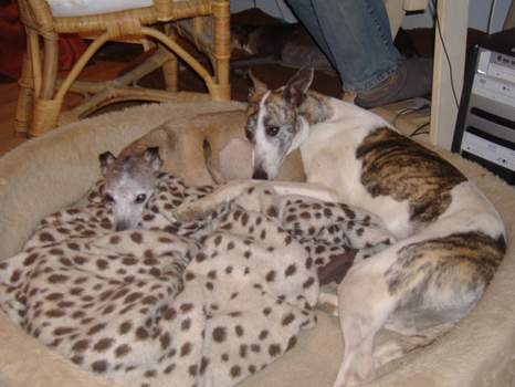 Ein Abendgrüßle von Patty und ihrer Whippetfreundin auf der Pflegestelle.