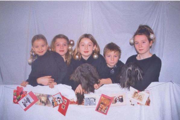 Eine Weihnachtskarte von Minou mit afghanischem Freund und Kindern, die wollten wir Ihnen nicht vorenthalten. Es begeistert uns immer wieder, daß es so etwas gibt: 5 Kinder und zwei gepflegte und umsorgte Afghanen.