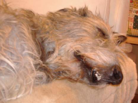 Strandbilder können wir - trotz Wüste - leider nicht bieten, aber dafür sehen Sie hier unsere Leila, heute Morgen fünf vor sieben noch im Tiefschlaf...
