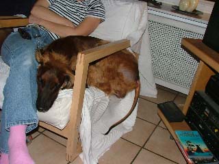 Jimmy ist unser Wachhund geworden, was für unsere alte Dame bedeutet, dass sie in Ruhe schlafen kann und sich nicht mehr mit Aufpassen belasten muss. Er hat allerdings inzwischen die Geräusche im Griff, sodass wir genau wissen, wer kommt, welches Auto die Türen zuklappt, usw. Er kann sich herrlich freuen, wenn wir ins Haus kommen, legt einem liebevoll die Pfoten auf die Schultern und wenn man sich nicht wehrt, wird man gewaschen, alles aber sehr nett. Insgesamt ist auch er ein sehr angenehmer Hausgenosse, der nur ins Bett unseres großen Sohnes geht, sonst nachts vor unserem Bett schläft oder vor der Schlafzimmertür in den Korb wechselt.