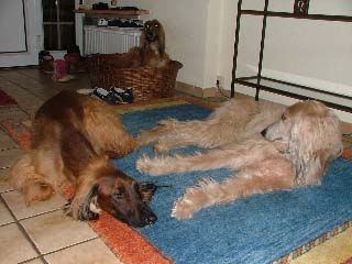 "Die beiden sind eine riesige Bereicherung für unsere komplette Familie. Beide haben sich so problemlos eingefunden und eingelebt, dass wir es eigentlich gar nicht glauben konnten und auf Einbrüche gewartet haben. Nach so vielen Jahren mit Afghanen ist man ja einiges an kleinen und großen psychischen Problemen gewöhnt, aber es ist bis heute wirklich nur erstaunlich. Wir hatten schon nach zwei Tagen das Gefühl, dass alles schon immer so gewesen sein muss.