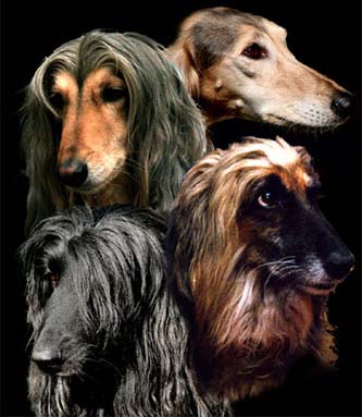 Die schwarze Afghanen-Hündin ist Dina (vermittelt September 2004).