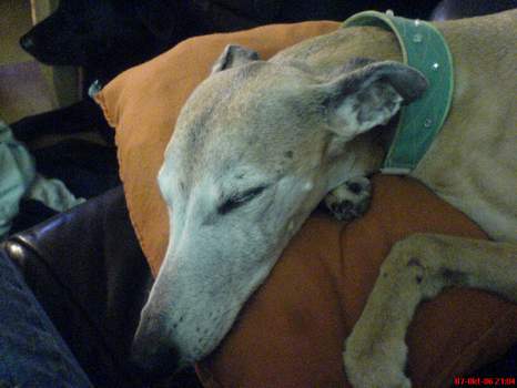 Dieselbe Familie, bei der Blanco ein Zuhause fand, hat ein Jahr später (im Mai 2005) auch unsere Marnie aufgenommen. Marnie war damals zehn Jahre alt und hatte Gesäugetumore. Die OP, welche der Tierarzt der Familie durchführte, verlief aber sehr gut und Marnie ist heute ein quietschfideles Whippetmädchen, das am Liebsten den ganzen Tag nur schmusen möchte.