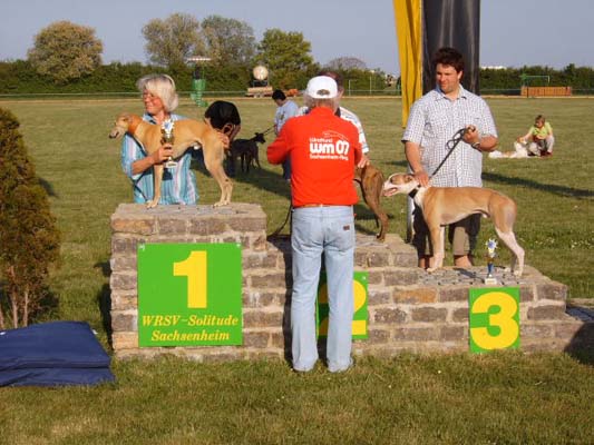 Wir danken seinem Frauchen für die gute Pflege. Zu einem solchen Erfolg gehört nicht nur ein schneller Whippet sondern auch ein Frauchen, das seine Leidenschaft unterstützt und fördert. Vielen Dank und weiterhin viel Erfolg.
