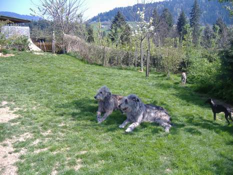Damit die heutigen News nicht so negativ enden, hier unsere beiden alten Wölfle Omi und Leila heute Nachmittag beim gemeinsamen Dösen im Garten.