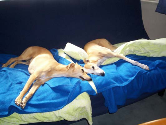 Über diese Bilder haben wir uns ganz besonders gefreut: Unsere Whippet-Hündin Dalia (links) mit ihrem neuen Freund. Vielen Dank an das Frauchen für die gute Pflege, Dalia ist wirklich eine ganz Süße geworden.