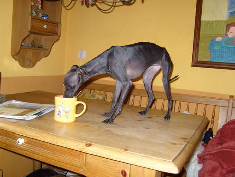 Dee-Dee probiert schon mal den Milchkaffee;-)