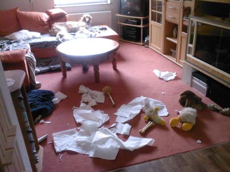 Manchmal muß der arme Kerl auch die Wohnung aufräumen :)