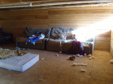 Übrigens, so sehen Sofas aus, wenn man junge Barsois hat... einen großen Teil trägt auch unsere "Urlaubs-Russin" dazu bei, die ja bis April bei uns ist, bevor sie nach England umziehen kann.