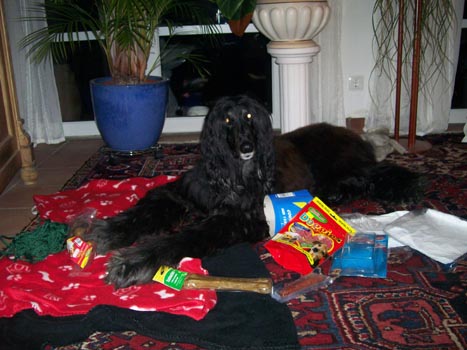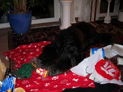 Hier sehen wir Chip, der jede Menge Geschenke selbst auspacken durfte...