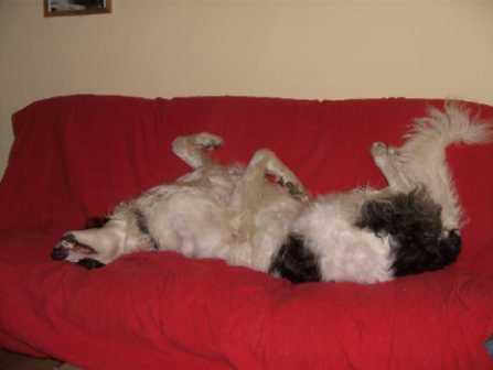 damit der Kleine auch weich fällt. Das Geschrei ist allerdings nicht weniger laut….weil jetzt schläft natürlich meistens ein anderer Hund auf der Matratze unten und auf den fällt er jetzt einfach drauf.