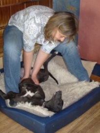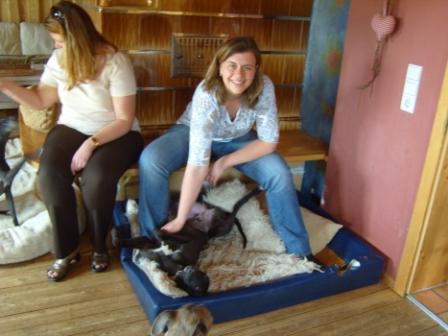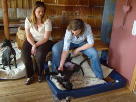 Auch Billy ist weg! Frisch gebadet und mit einem wunderschönen Norrit-Halsband ausgestattet, hat er eben mit Frauchen Andrea die Heimreise ins Bayrische angetreten. Andrea freut sich, dass Billy so ein verspieltes Kasperle ist, denn Norrit war keine "Spielerin". Wir freuen uns, dass Andrea sich auch von den zerstückelten Kissen und dem sofort in Stücke gerissenen, mitgebrachten "Stoffhenderl" nicht abhalten lies, Billy einzupacken.