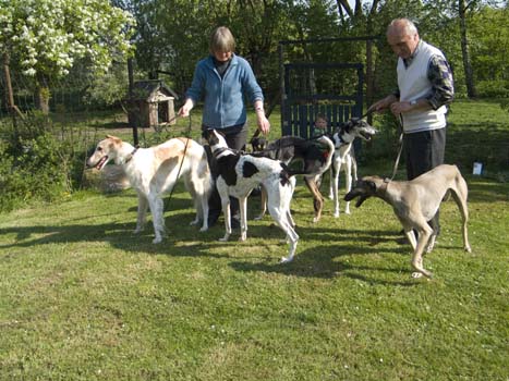 In Bersteland kam ganz unerwartet lieber Besuch aus Holland, Carla mit Mann, vier Chart Polskis und einer Barsoi-Hündin. Letztere ist unsere Anabela (vermittelt April 2008), die sich unter der guten Pflege zu einem prächtigen Barsoi-Mädchen entwickelt hat. Auch die wildfarbene CP ist ein ehemaliger iWi-Schützling (vermittelt Juli 2008) - auch Solka ist jetzt ausgewachsen sehr hübsch geworden.