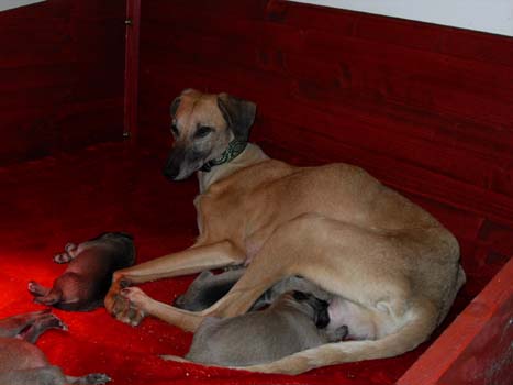 Man sieht, daß sie alle gut zugenommen haben und sich sloughiwohl fühlen.