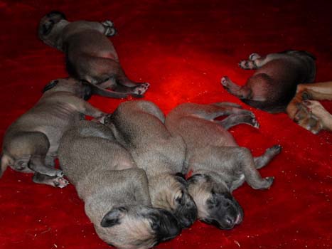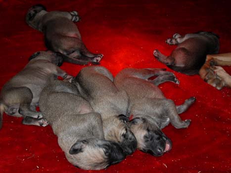 So unsere kleinen Sloughi-Mäuse werden morgen eine Woche alt und waren für einen neuen Fototermin bereit...