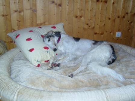 Soeben ist Nicolai in sein neues Zuhause nach Wiesbaden gefahren. Warum er so lange bei uns war, bis die richtigen Menschen kamen, ist uns ein Rätsel. Seit Juli letzten Jahres sah er (wir habens eben gezählt) zwanzig Windis auf seine Pflegestelle kommen und wieder gehen, alle haben ein Zuhause gefunden, nur er mußte so lange darauf warten. Ok, das Warten ist ihm, so hoffen wir, nicht allzu schwer gefallen und er fühlte sich auch ganz wohl bei uns, aber trotzdem ist ein eigenes Sofa und eine eigene Familie doch was ganz anderes. Im neuen Zuhause muß er dieses nur mit drei anderen Windis teilen: Barsoi Heidi, Galga Sophie und Grey Mary-Jane. Also praktisch ist Nico ab sofort HAHN IM KORB;-)