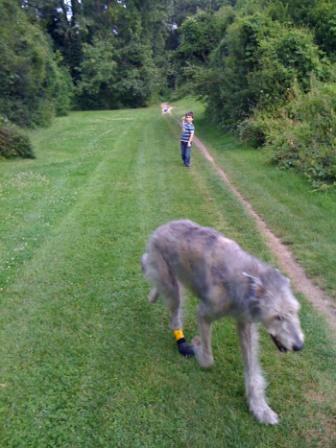 Noah, Spaziergänge ja gar nicht gewohnt, hat sich schon den Ballen aufgerissen, aber das wird wieder. Kommt Zeit, kommt Hornhaut.