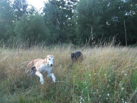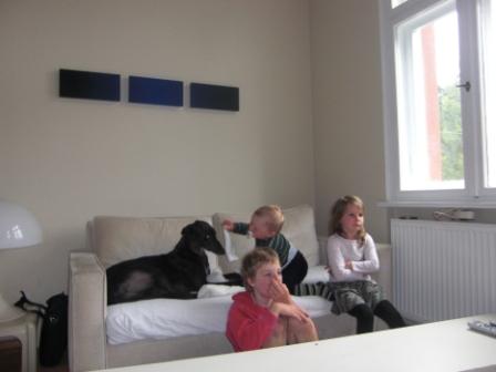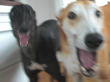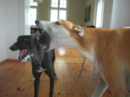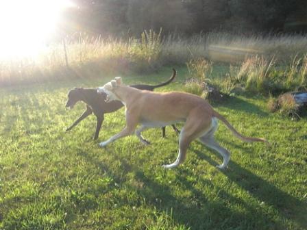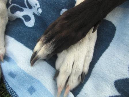 das sind die Pfoten von Daisy und ihrem neuen Freund, auch ein Grey, einen Whippie gibt es auch noch. Drei Hunde, drei Kinder - was kann das Leben glücklicher machen?!