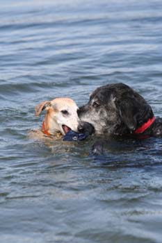 Den alten Joschi hab’ ich mal locker abgehängt... sieht man hier toll, wie ich durchs Wasser fliege, gell?