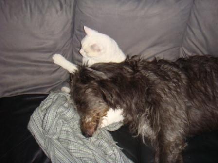 Bei dem heutigen Sauwetter bevorzugt Fiona ein ganz besonders kuscheliges Kopfkissen: Kater Linus. Danke Sabine für das Foto.