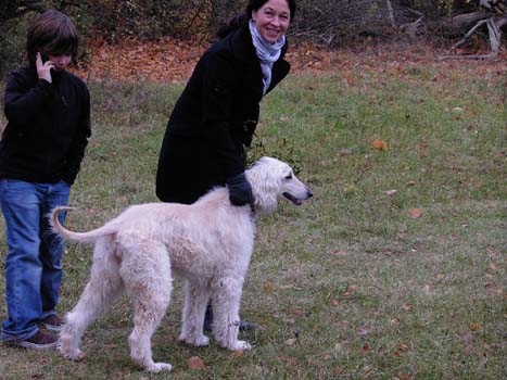 Beim Spaziergang mit Frauchen Suse. Irma ist ein echter Ausnahmeafghane: sie kann ohne Leine laufen